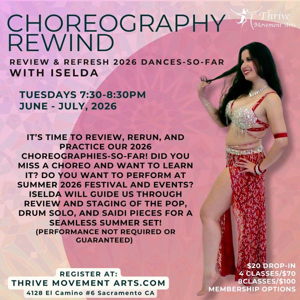Learn a fun, upbeat Choreography to a Cairo Pop hit with Iselda! This dynamic piece will be performed for the 2026 festival season with student troupe Kanz Altaaj. Performing not required or guaranteed. Get a workout and learn the hottest new moves! All levels welcome.