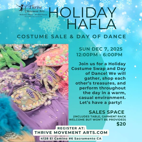 Join us for a Holiday Costume Swap and Day of Dance! We will gather, shop each other’s treasures, and perform throughout the day in a warm, casual environment. Let’s have a party!