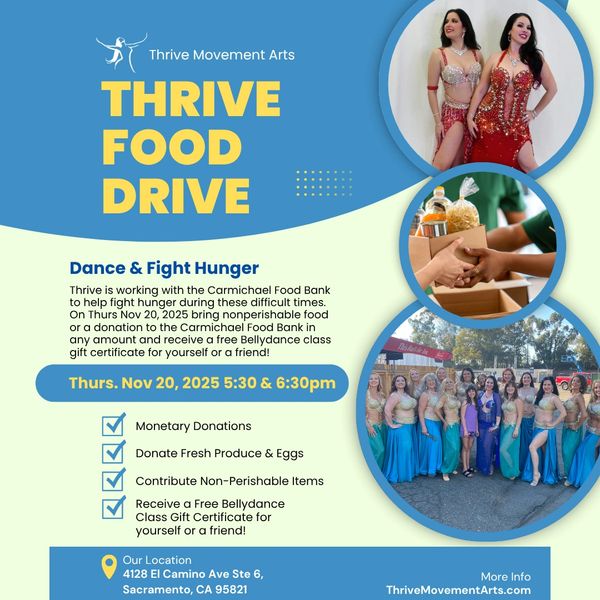 Bring a food or monetary donation in any amount and receive a Free Bellydance Class Gift Certificate for yourself or a friend! Gift card can be used immediately or saved and does not expire.